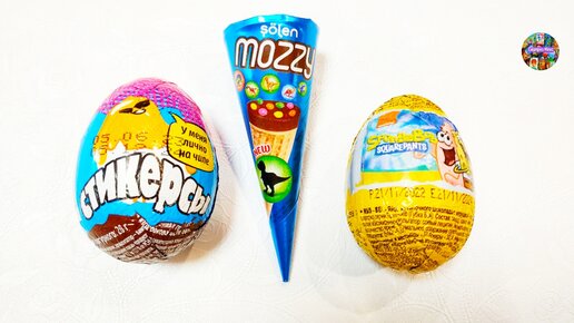 СТИКЕРСЫ В ЯЙЦЕ, ГУБКА БОБ В ШОКОЛАДНОМ ЯЙЦЕ, РОЖОК С СЮРПРИЗОМ ИЗ КБ