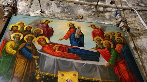 Это икона "Успение Богородицы" в Храме Успения Пресвятой Богородицы в Гефсимании, рядом с Усыпальницей Богородицы