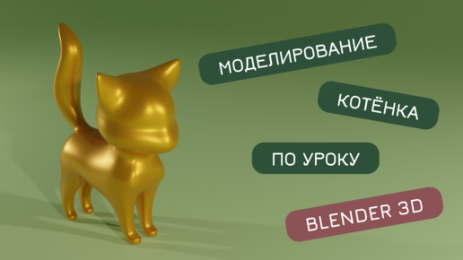 Продолжаю выполнять уроки рисования в 3D. Моделирование золотого котенка в Blender 3D