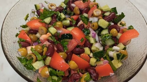 Яркий салат с красной фасолью и овощами,без майонеза.
