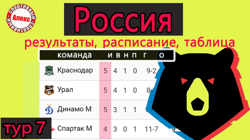 Ростов падает. Чемпионат России по футболу (РПЛ). 7 тур. Результаты. Расписание. Таблица.