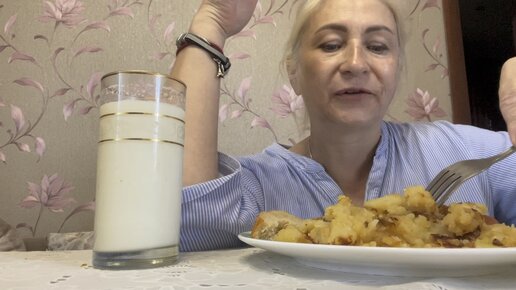 Мукбанг!жареная картошка со шкварками и молоком! Что мы себе преобрели!