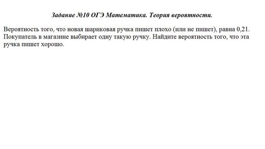 Для решения этого задания из ОГЭ по математике нужно знать всего одну формулу! Задание 10. Теория вероятности
