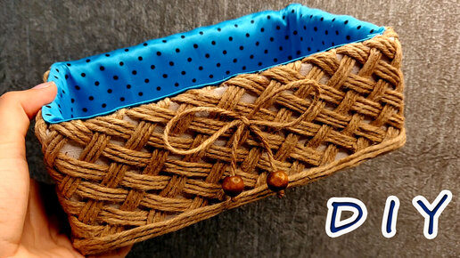 Красивый декор старой коробки из джутовой верёвки своими руками