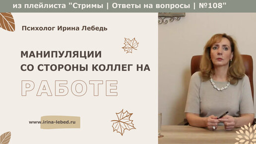 Манипуляции со стороны коллег на работе - из плейлиста Стримы Ответы на вопросы № 108 - психолог Ирина Лебедь