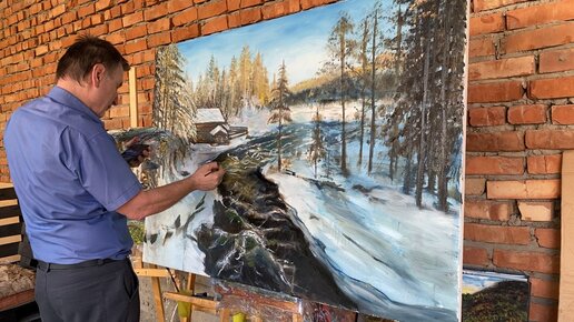 2-этап. Домик у реки, маслом на холсте 100 на 150 см. Зилавди Яшуркаев.