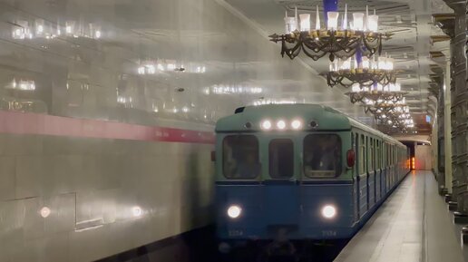 "Ретрик с кабриком!" Ретро-метропоезд Е/Ема/Емх (81-703/705/706) с грузовым вагоном Емх на ст.м.Автово