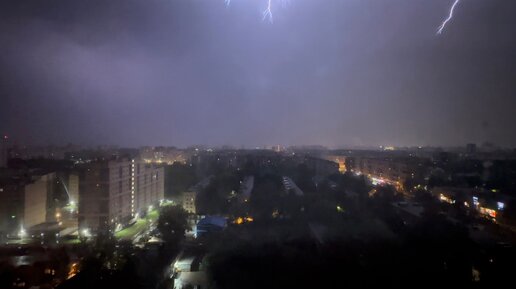 Сверкающие молнии. Ночная гроза над Санкт-Петербургом в 2023 году