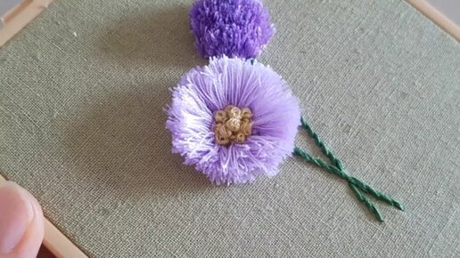 Вышивка астры. Цветочная вышивка. Объемная вышивка.