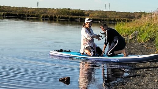Уроки плаванья на сапборде. Все-таки нырнула🤣
