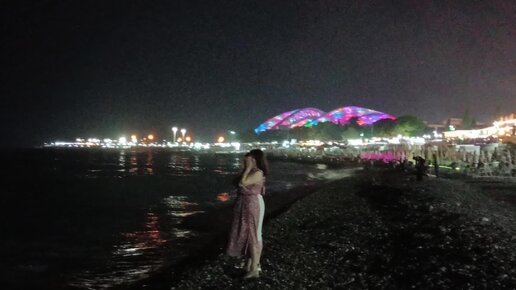 Приятный вечерок у моря в Имеретинке. Ещё днём тут бушевал сильный шторм, а сейчас шум прибоя, мерцающие огни набережной и красавец "Фишт".