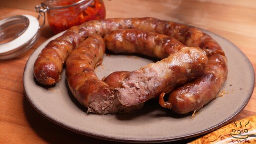 Домашняя мясная украинская колбаса с чесноком - запеченная. В магазине такую не купить