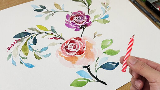 Техника "воскового резиста" в акварельной живописи. Роспись цветов. Живопись акварелью