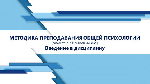 МЕТОДИКА ПРЕПОДАВАНИЯ ОБЩЕЙ ПСИХОЛОГИИ. Введение в дисциплину