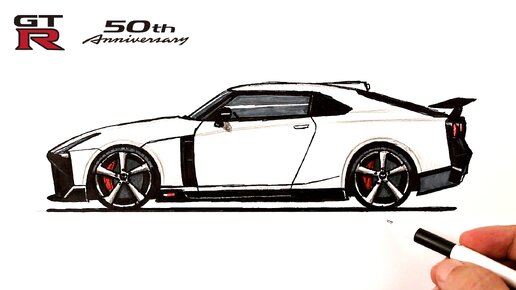Как нарисовать машину Ниссан GT-R50