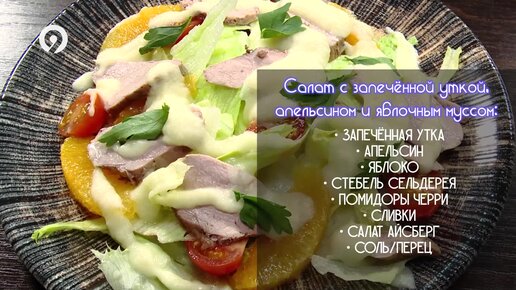 Салат с запеченной уткой, апельсином и яблочным муссом