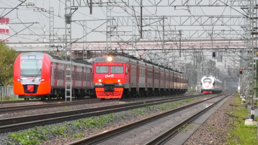 "Наперегонки". ЭВС1-11 "Сапсан" обгоняет ЭТ2М-111 сообщением Москва - Тверь