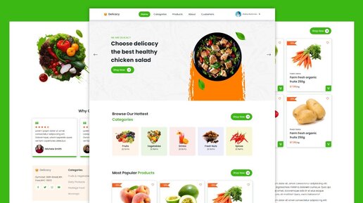 Видео верстка шаг за шагом адаптивного сайта о фруктах и овощах с использованием HTML, CSS и JavaScript