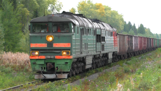 Гибрид 2ТЭ116-656 А/230 Б с грузовым поездом