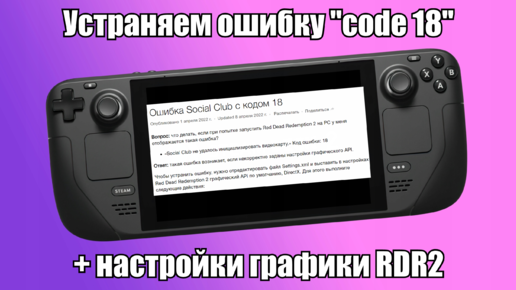 УСТРАНЯЕМ КОД ОШИБКИ 18 и НАСТРАИВАЕМ RDR2 для игры на STEAM DECK