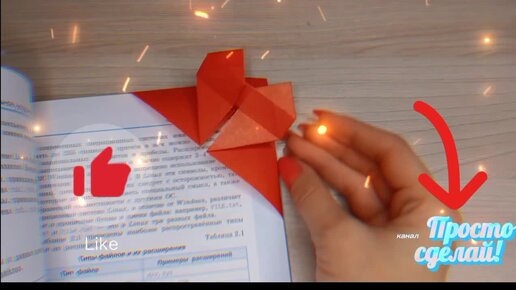 Оригами закладка уголок для книг из бумаги в виде сердечка