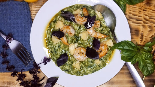 Ризотто с шпинатом и креветками