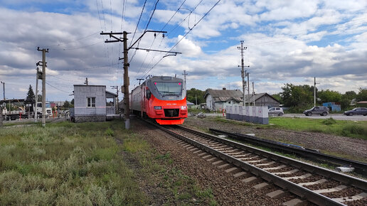 Электропоезд ЭП2Д-0194 отправляется с о.п. Совхоз Бердский