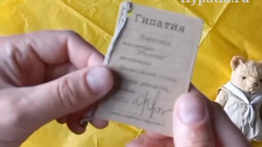 Упаковка игрушки миниатюрного плюшевого мишки тедди. Желтая бумага тишью, посылка.