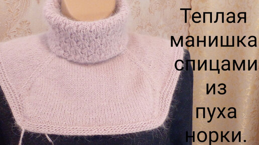 Теплая манишка спицами из пуха норки.