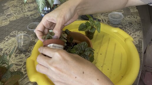 Пепероши и фиттонии в глиняных бонсайницах.