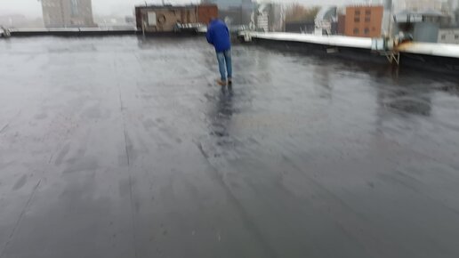 Работа ливнёвки в дождь на крыше.