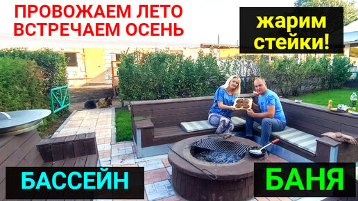 Провожаем ЛЕТО! Встречаем ОСЕНЬ! Жарим правильные стейки. Баня, бассейн, очаг.