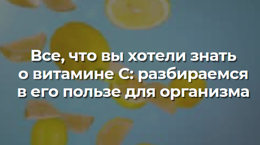Все, что вы хотели знать о витамине C: разбираемся в его пользе для организма