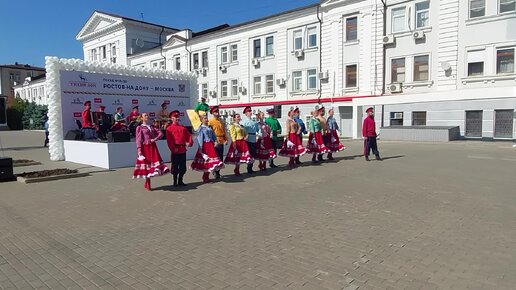 Ансамбль донских казаков на вокзале Ростов-Главный перед отправлением в первый рейс поезда "Тихий Дон" после возвращения названия