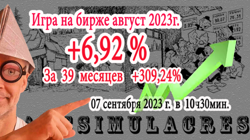 Август 2023г (+6,92%).За 39 месяцев игры +309,24%.