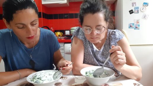 Огурчик с кефиром такая вкуснятина//Мукбанг с сестрёнкой.