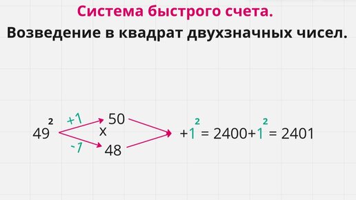 Система быстрого счёта. Возведение в квадрат двузначных чисел.
