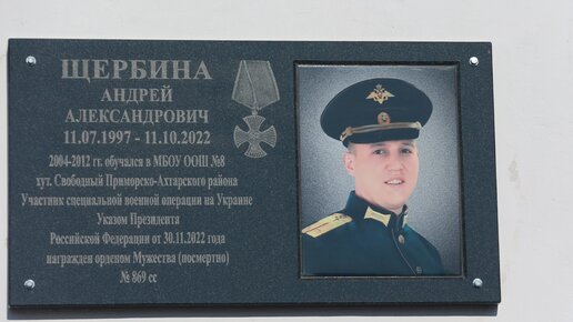 Мемориальную доску в память о погибшем участнике спецоперации открыли в хуторе Свободном.