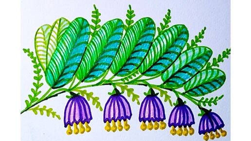 🌿💜🌿Декоративное рисование маркерами ветки с цветами.