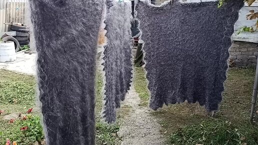 Большое пуховое одеяло и два платка пледа из козьего пуха.