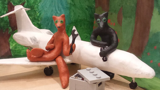 Лисы - механики ремонтируют модель самолёта ✈️🔧