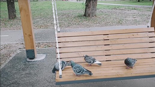 Голуби качаются на качелях. А в чем смысл асфальтового благоустройства в белом человечке на тропинке