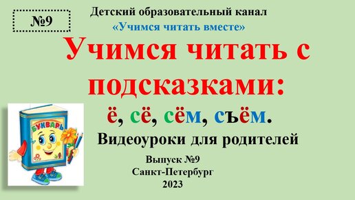 "Учимся читать вместе". Учимся читать с подсказками: ё, сё, сём, съём. Видеоуроки для родителей. Выпуск №9.
