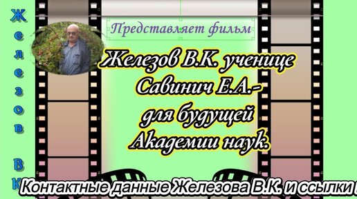 Железов В. К. ученице Савинич Е. А. - для будущей Академии наук.