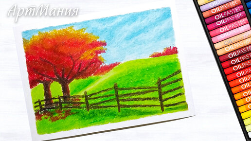 Как нарисовать осенний пейзаж масляной пастелью поэтапно для начинающих