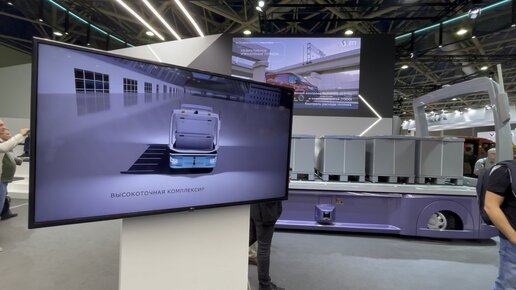 Беспилотник NEOS на стенде группы компаний ГАЗ. Выставка Комтранс 2023 ComTrans Вся инфо на экране монитора стенда.