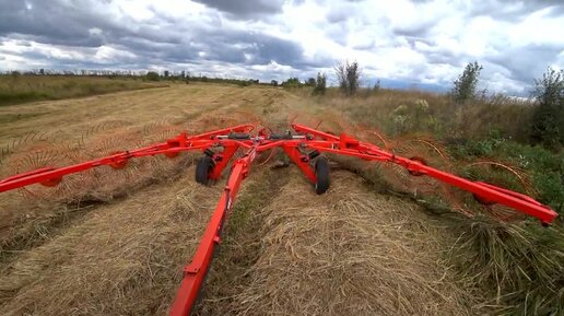Хорошая погода,сгребаю и прессую сено с суданкой