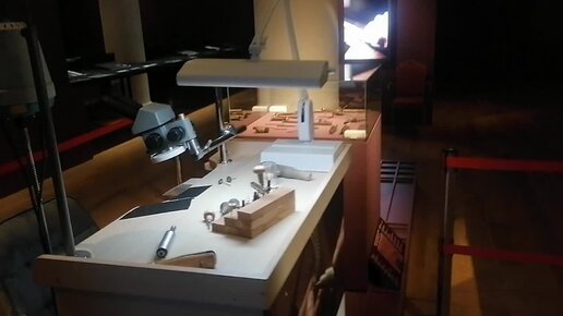 Рабочее место ювелира на выставке "Путь бриллианта" в выставочном комплексе Исторического музея.