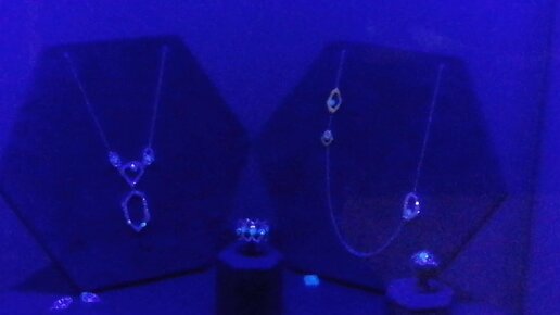 Эффект люминесценции бриллиантов в ювелирных изделиях на выставке "Путь бриллианта" выставочном комплексе Исторического музея.