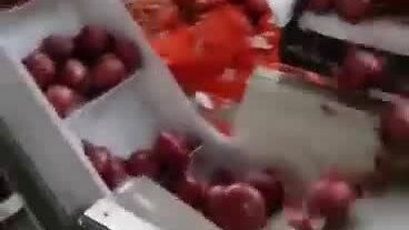 Упаковка лука в сетку на автоматической упаковочной линии от компании ПРОСТОР-К. Больше упаковочного оборудования на сайте prostor-k.ru